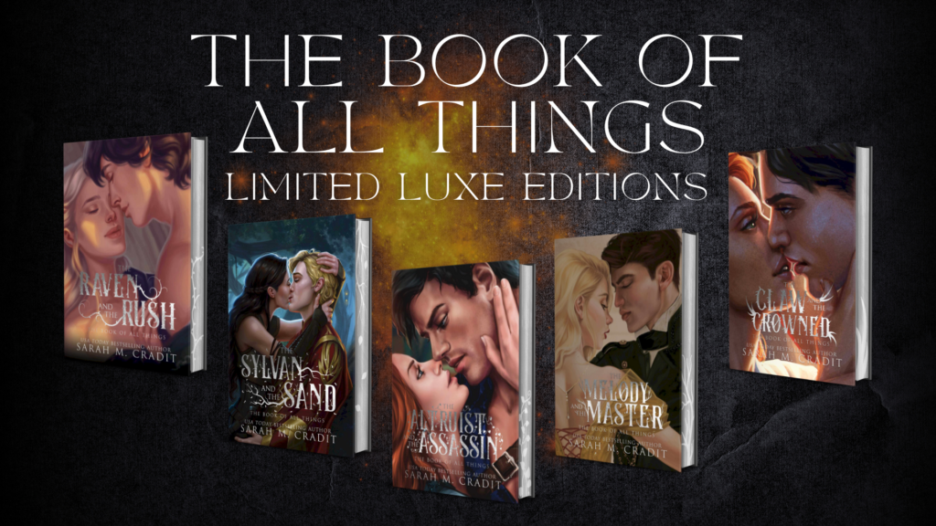 Kickstarter is another way Sarah brings projects to life. The campaigns on the platform are aimed at creating luxe special editions and book boxes, above and beyond the beautiful covers and interiors on the standard editions of her books. Specialty printers require minimum orders, and many of the items she chooses for her boxes are not available at all times. Sarah will always aim to produce the most spectacular products she can, and Kickstarter is a great platform for precisely that.