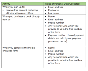 We only collect Personal Data where you choose to interact with us on the Website in the following ways: