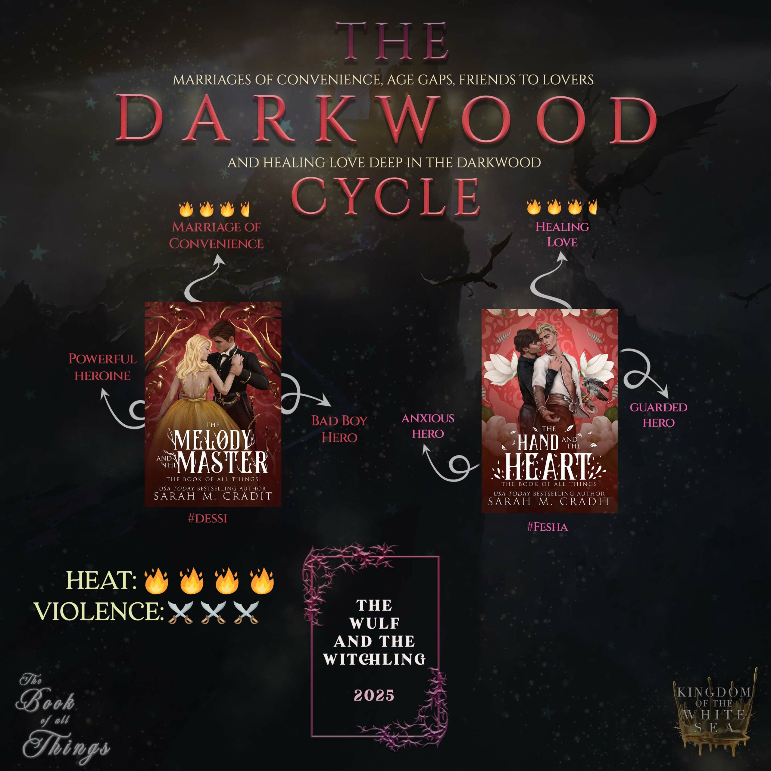 The Hand and the Heart is a friends to lovers romance, featuring Stiofen and Pesha, characters first introduced in The Melody and the Master. It is the second story in the Darkwood Cycle of The Book of All Things, but can also be enjoyed as a standalone.