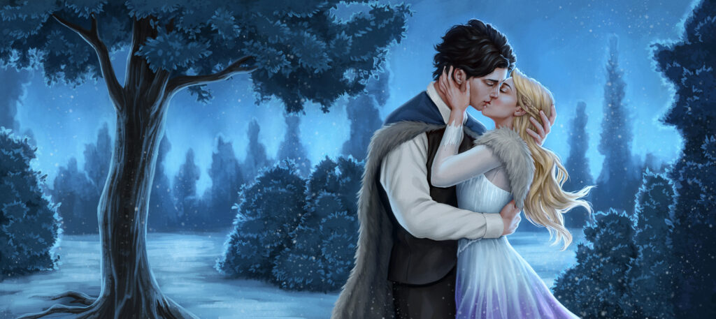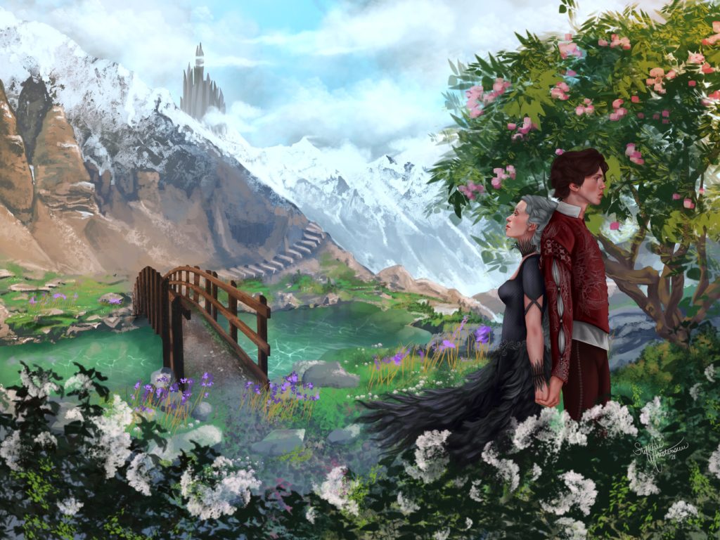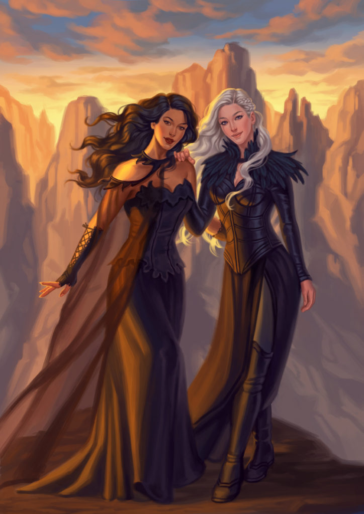 “Evra and Rhosyn on Icebolt Mountain” by Alexandra Curte for The Raven and the Rush