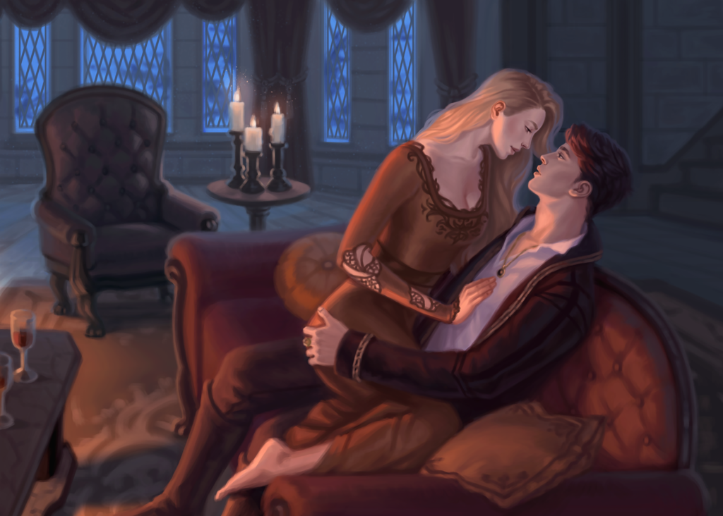 “Evra and Rhosyn in the Armory” by Alexandra Curte for The Raven and the Rush